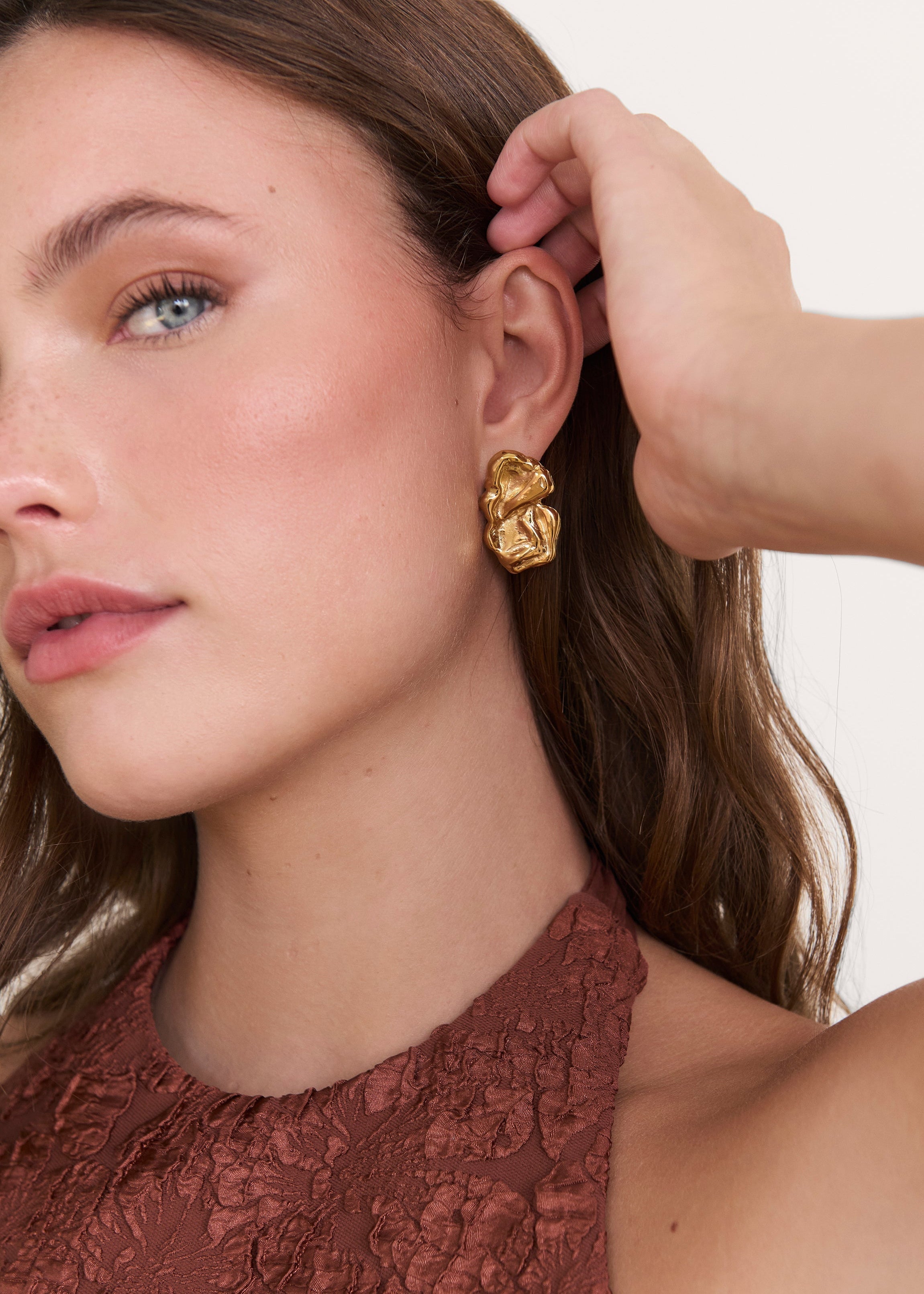 Juliette es un vestido largo que combina la estructura sofisticada del jacquard en tono terracota con la ligereza de una falda de gasa tipo bambula. El contraste de texturas resalta su diseño único: un cuerpo elegante con escote halter y espalda descubierta que se funde con la fluidez etérea de la gasa, creando un look lleno de movimiento.