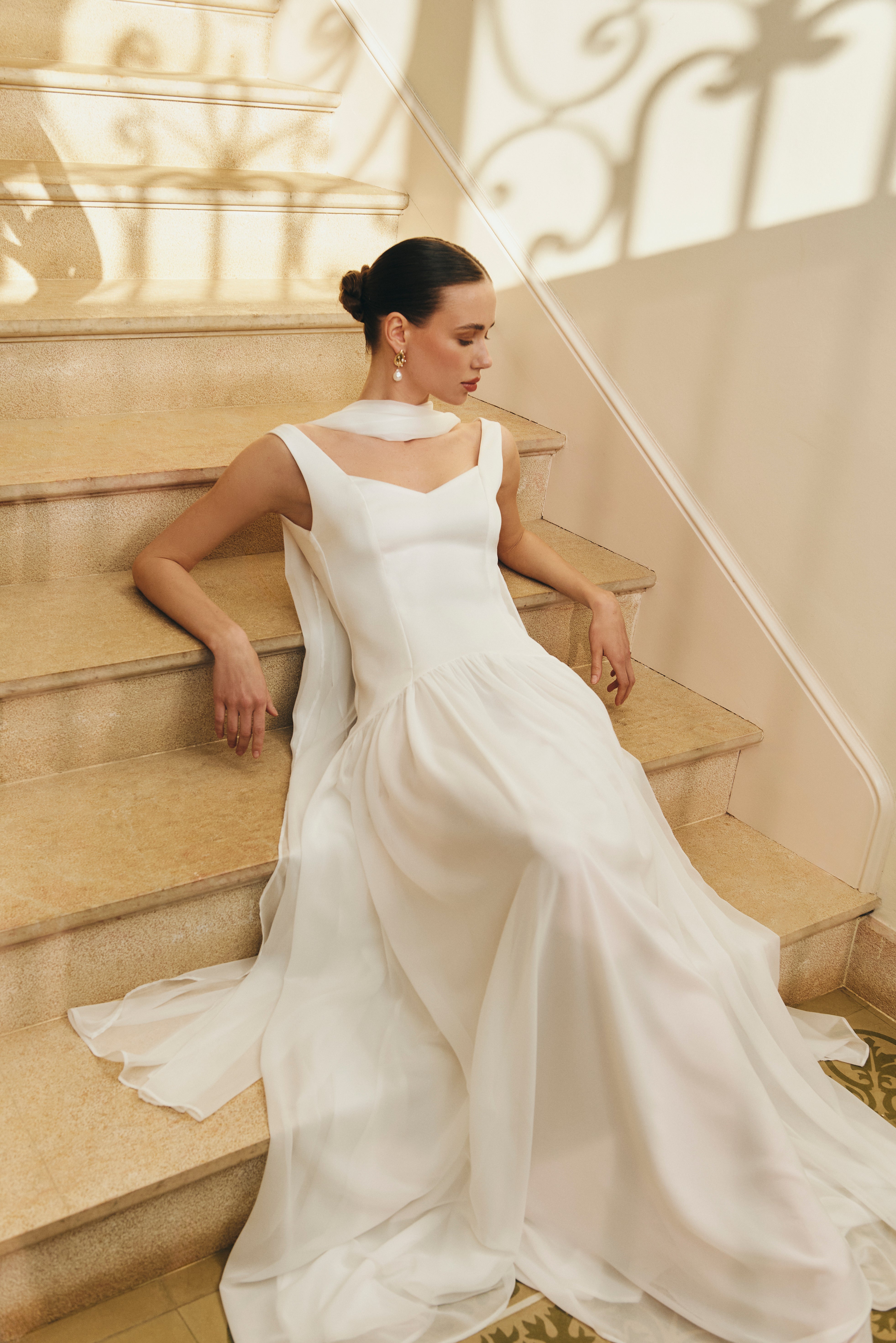El vestido Vera bridal, combina sofisticación y moda en su totalidad. Su cuerpo con efecto encorsetado y escote princesa realza la silueta , mientras que la falda de gasa, da gran volumen y movimiento, aportando un aire romántico y majestuoso. Totalmente forrado para un acabado impecable, es la elección perfecta para una novia que busca un equilibrio entre tradición y modernidad.