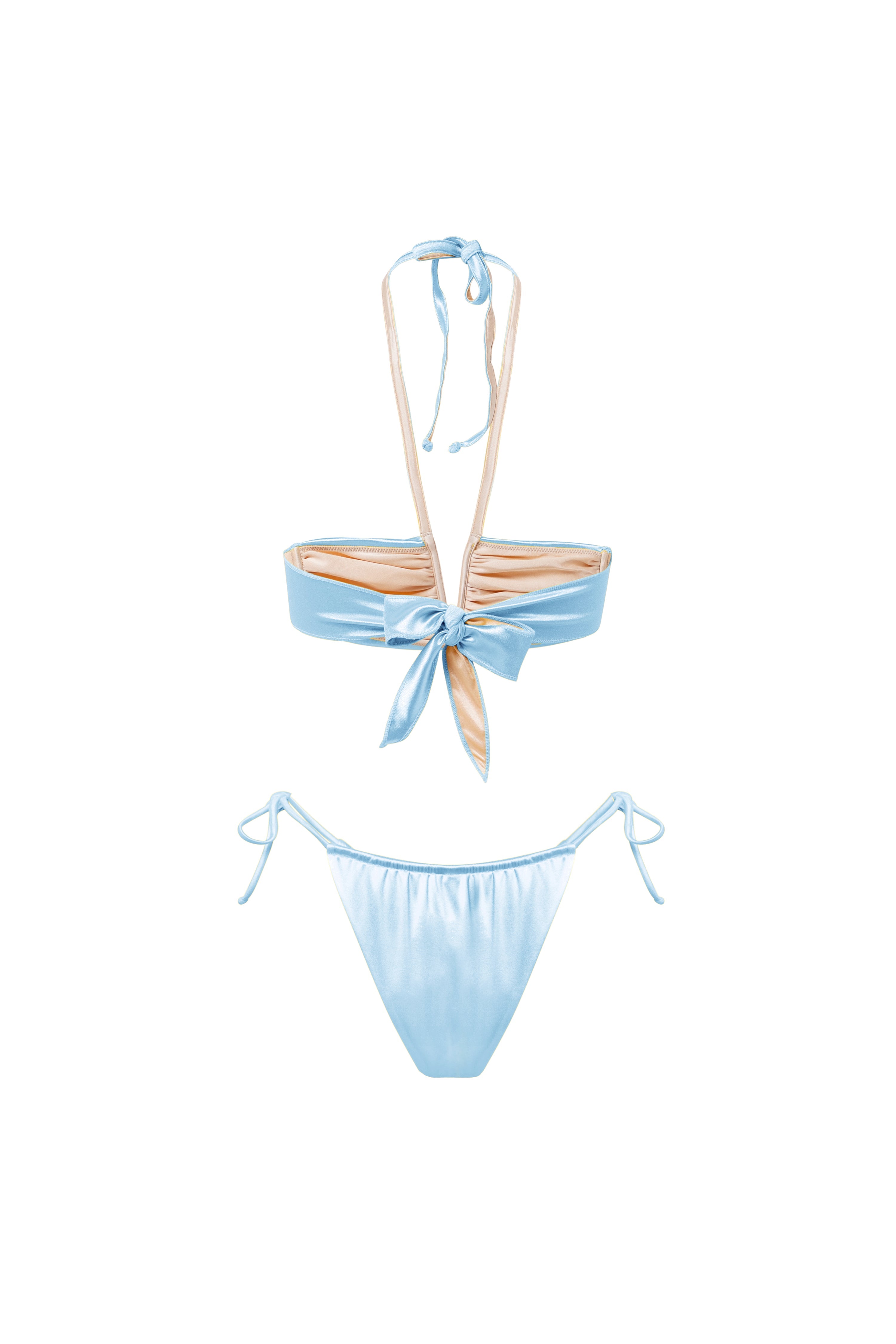 Color Baby Blue Composition 90% nylon, 10% elastane Care Instructions Place in a laundry bag when washed. Bikini Top Style Bandeau with self-tie straps Bottom Fit Cheeky shape adjustable fit Top Usage High-rise or mid-rise