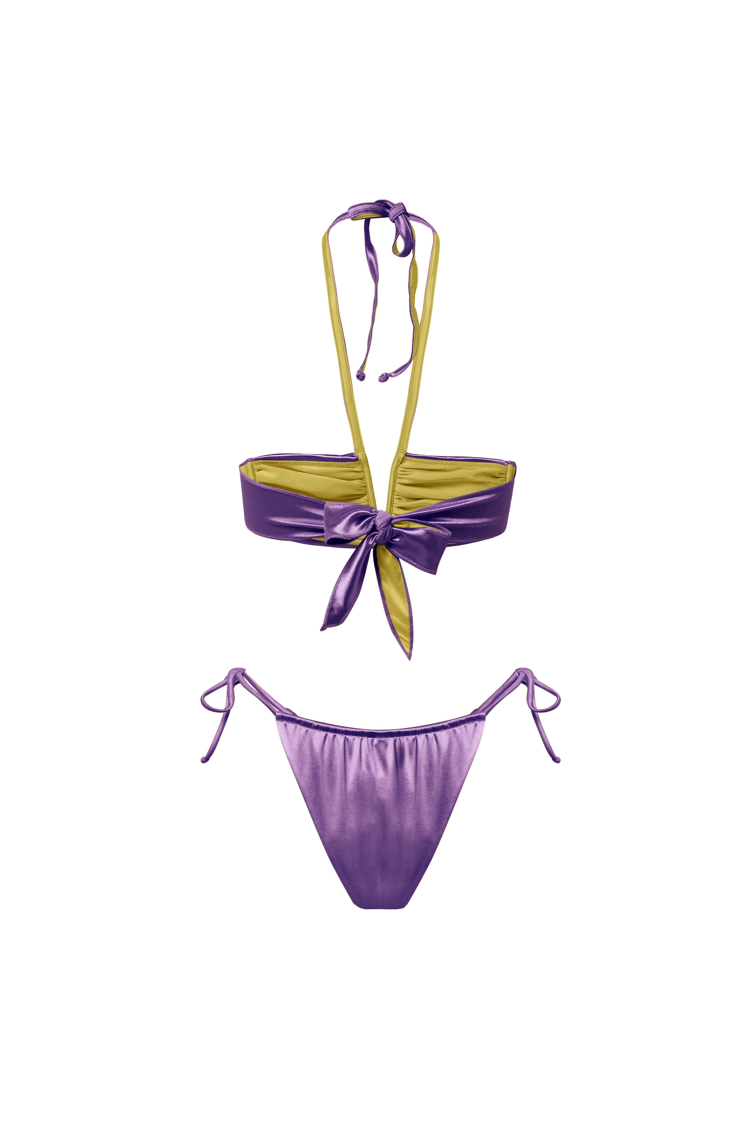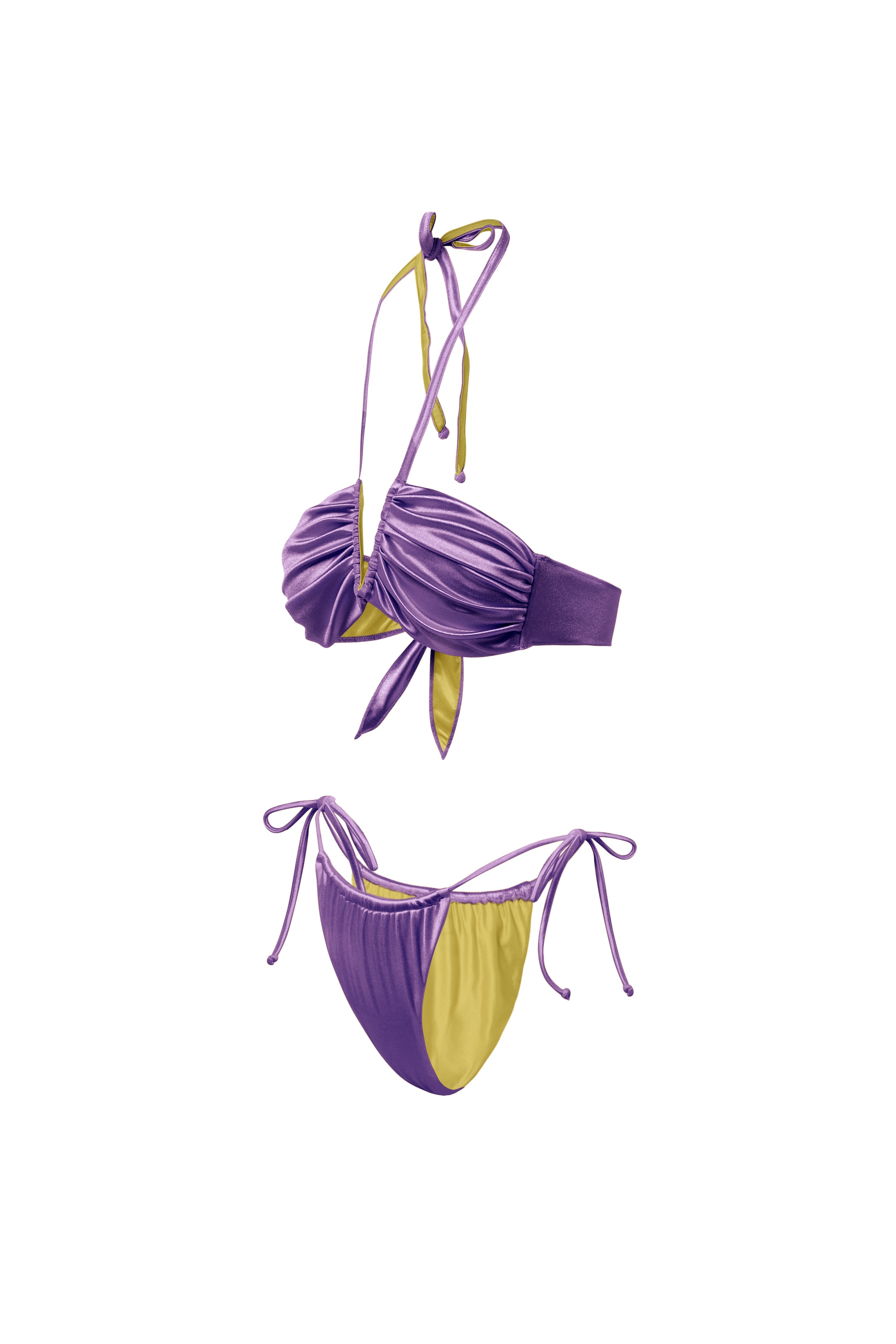 Material 90% nylon, 10% elastane Care Instructions Place in a laundry bag when washed Color Ultra Violet Bikini Top Type Bandeau Bikini Bottom Fit Cheeky, adjustable high-rise/mid-rise