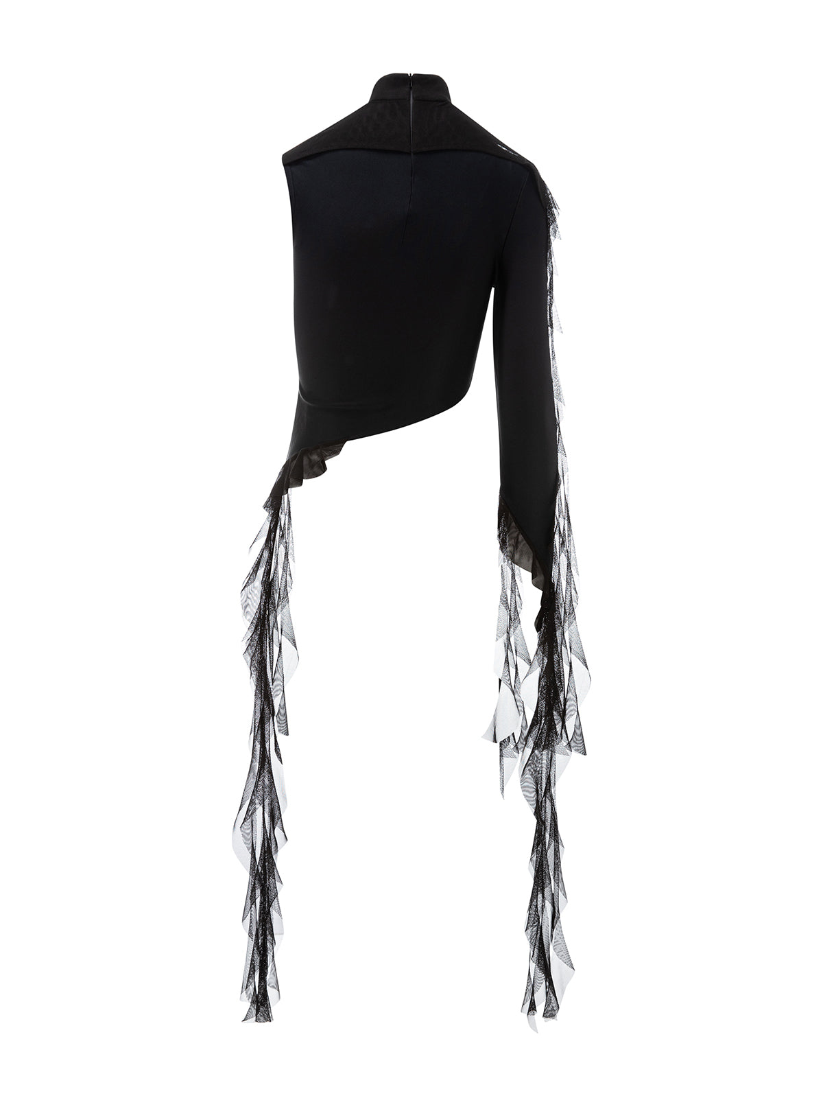| Design | Turtleneck, one-shoulder, asymmetric cut |