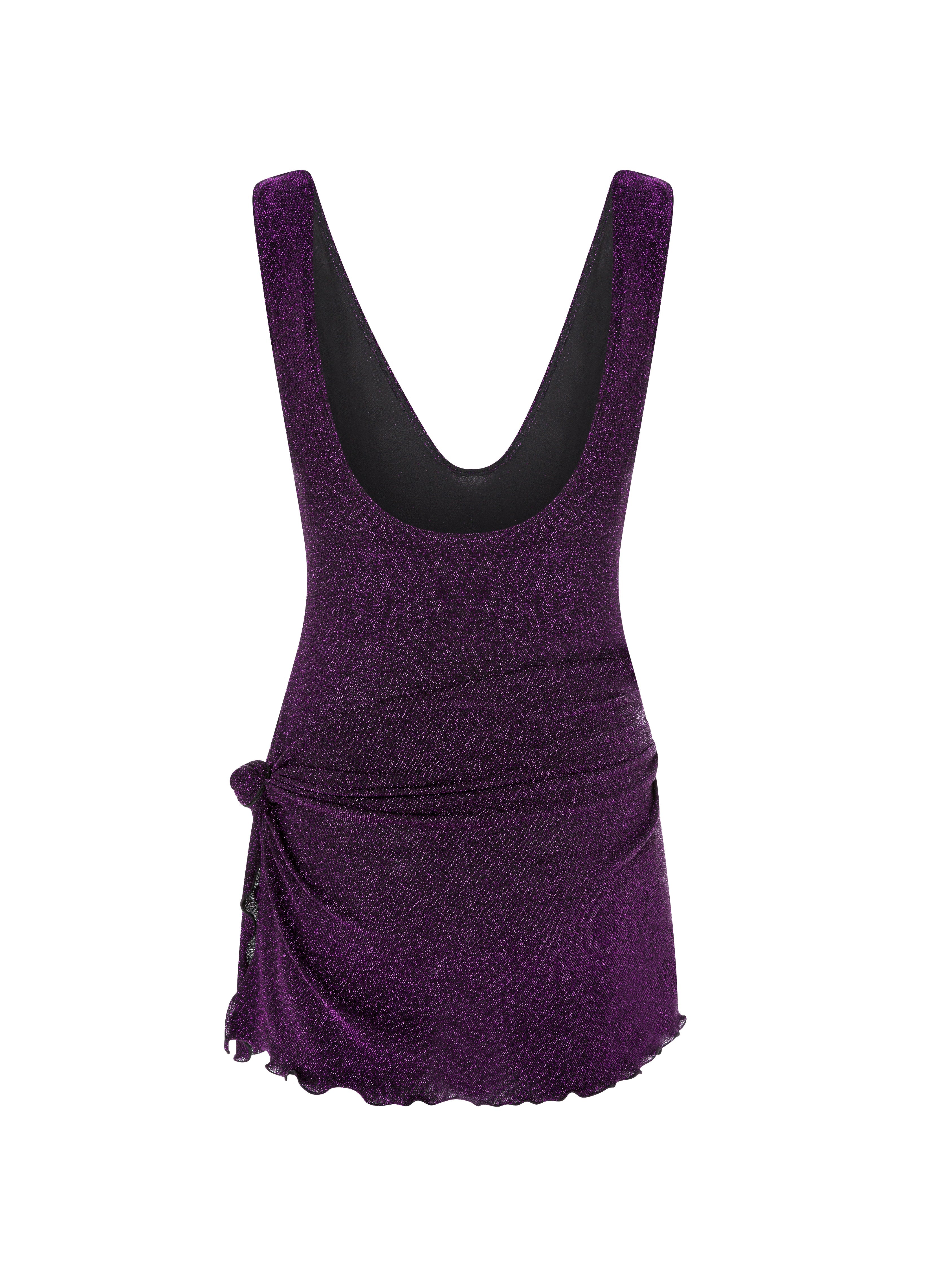 Length Mini Neckline Deep V Sleeves Sleeveless Belt Pleated with side bow Fabric Composition 65% nylon, 30% lurex, 5% elastane Care Instructions Hand wash or dry clean only