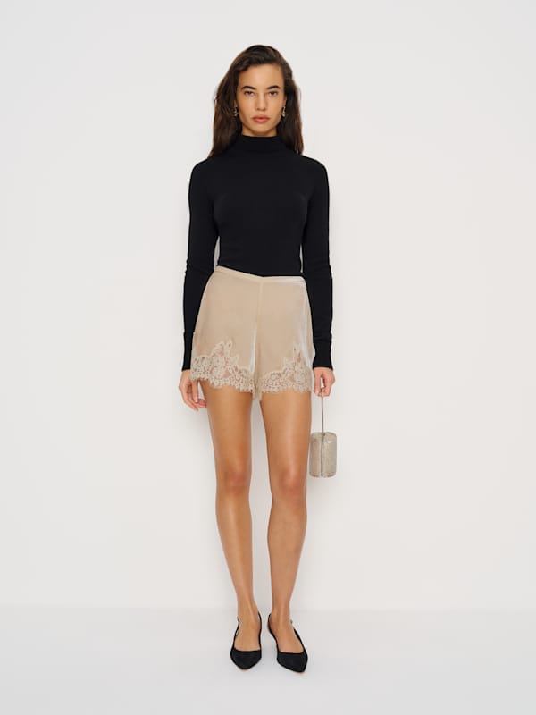 Qui, moi ? Découvrez le short en velours Fern de Reformation, un short décontracté à taille mi-haute et ourlets en dentelle. Déjà sur la wishlist de votre dressing.